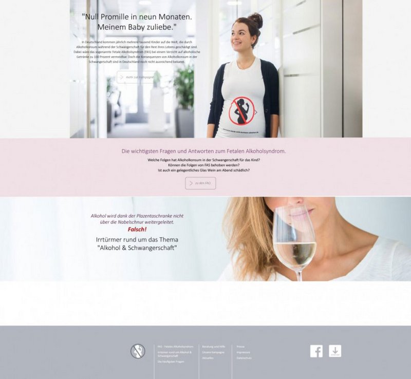 Herausstechendes Merkmal und Aushängeschild der Kampagne ist das einprägsame, mit einem roten Verbotszeichen versehene Schwangerschafts-Piktogramm, das alle Pernod Ricard-Flaschen weltweit ziert. Für breite Aufmerksamkeit sorgen bisher zwei TV-Spots sowie Plakatkampagnen, die mehr als 60 Mio. Kontakte generieren konnten. Zentrale Informations- und Kommunikationsplattform rund um das Thema Alkohol & Schwangerschaft ist neben der Website www.mein-kind-will-keinen-alkohol.de eine eigene Facebook-Seite, die das Thema in die sozialen Medien verlängert. Beide Kanäle räumen mit weit verbreiteten Irrtümern auf, bieten umfangreiche Informationen zu FAS, hilfreiche Tipps für Schwangere sowie Kontakte und Beratungsstellen für FAS-Betroffene. Seit dem Kampagnenstart 2010 konnten damit viele Multiplikatoren gewonnen und öffentliche Diskussionen angestoßen werden.